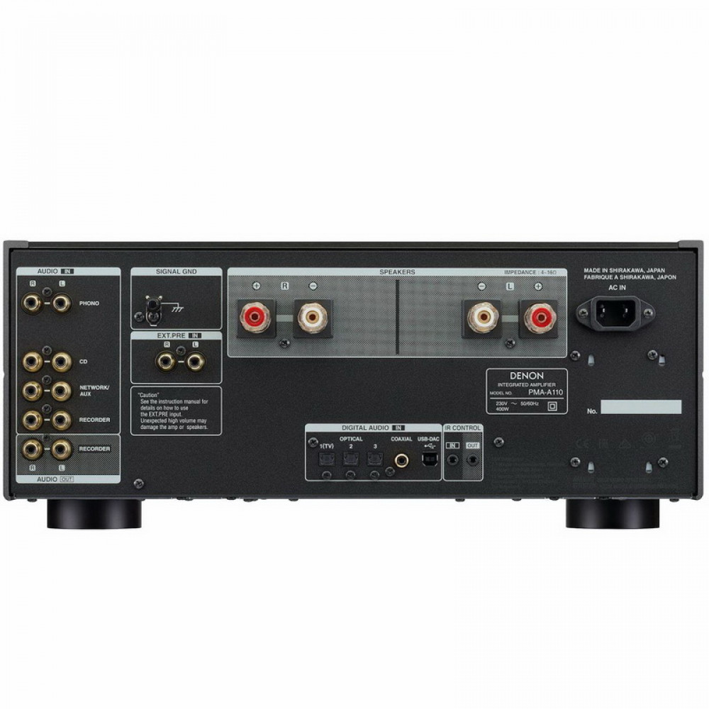 Интегральный усилитель Denon PMA-A110 создан на безе запатентованной Denon модифицированной двухтактной схемы усилителя мощности на полевых транзисторах сверхвысоких токов (UHC), которая обеспечивает мощность 160 Вт на канал. Встроенный цифро-аналоговый преобразователь премиум-класса на 4 микросхемах BurrBrown PCM1795 в параллельном включении поддерживает воспроизведение аудиофайлов высокого разрешения (до 384кГц/32бит) и позволяет получить высочайшее разрешение и качество звука.