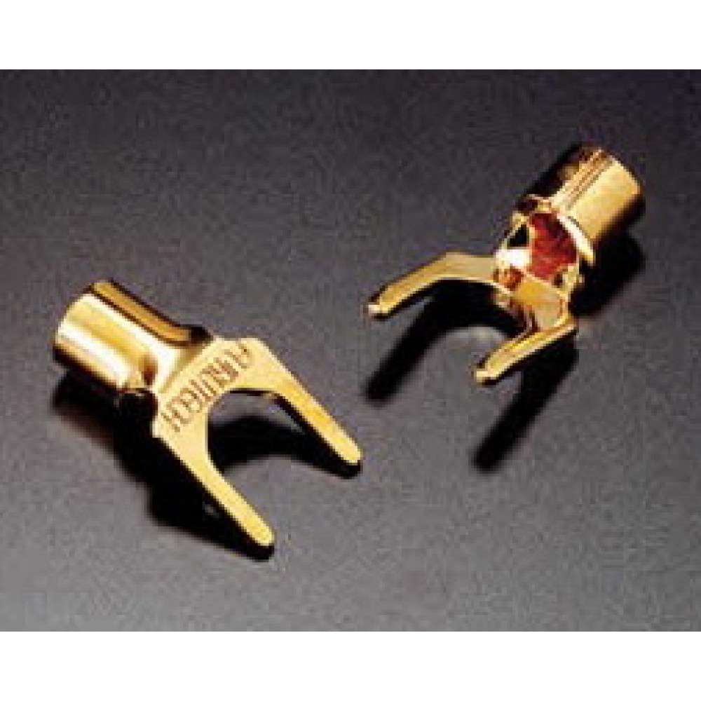 Медный сплав, специально обработанный по альфа технологии, (G) - покрытый золотом 24 карата . Под зажим или пайку акустического кабеля диаметром до 8.2 мм. Цена за 1шт.