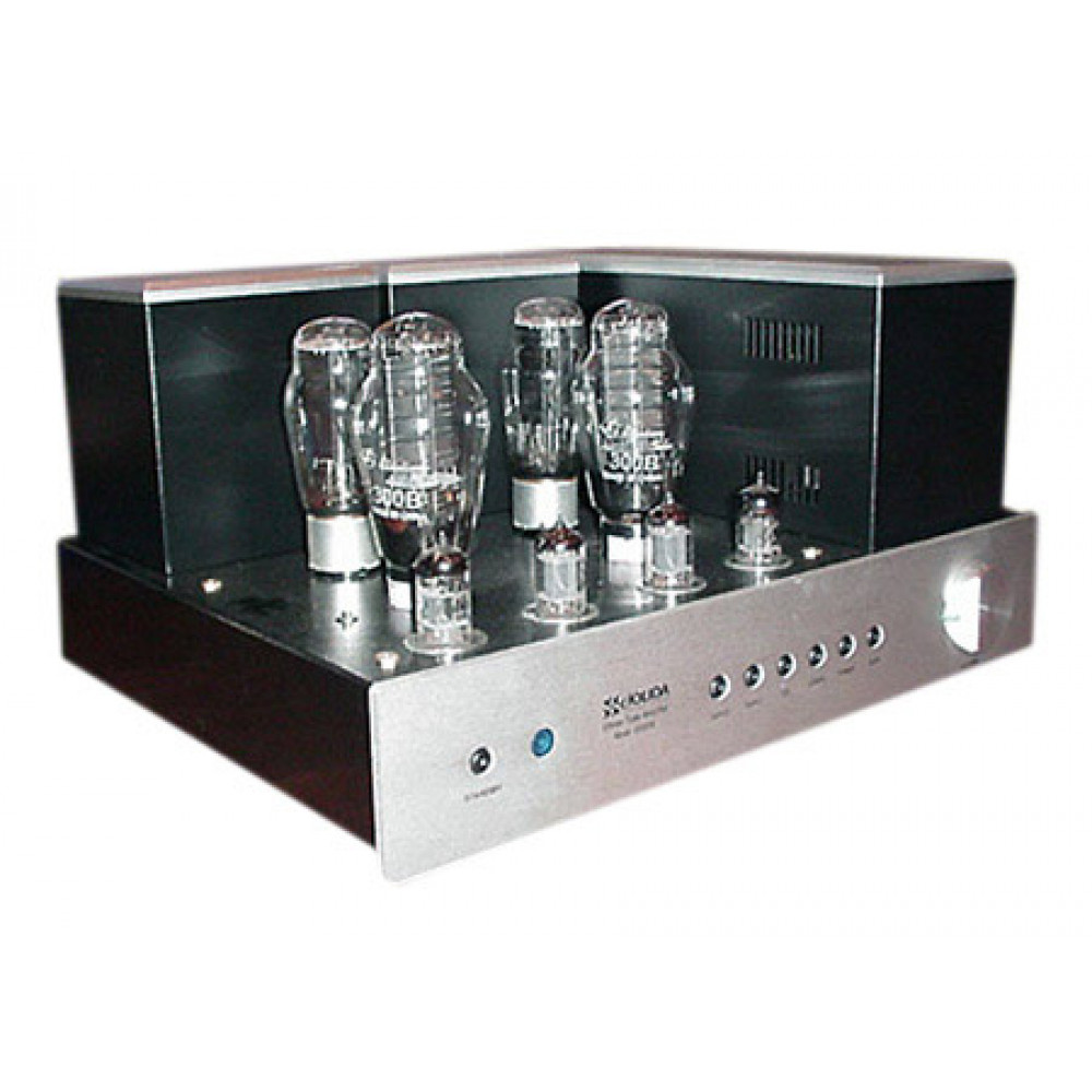 Ламповый интегрированный однотактный усилитель класса А, с выходной мощностью 9 Ватт на триодах 300В. Максимальная мощность: 12 Ватт. Использовано кенотронное питание. Имеет 4 входа: CD, Tuner, Tape и Aux. Селектор входов расположен на алюминиевом фронте. Укомплектован пультом ДУ. Заказные трансформаторы из немецкой стали. Дизайн 15-го поколения. Настройка под акустику 4 ohm или 8 ohm. Применены высококачественные компоненты: аттеньюаторы ALPS, позолоченные терминалы входов и акустики, высокоскоростные диоды и немецкие конденсаторы.