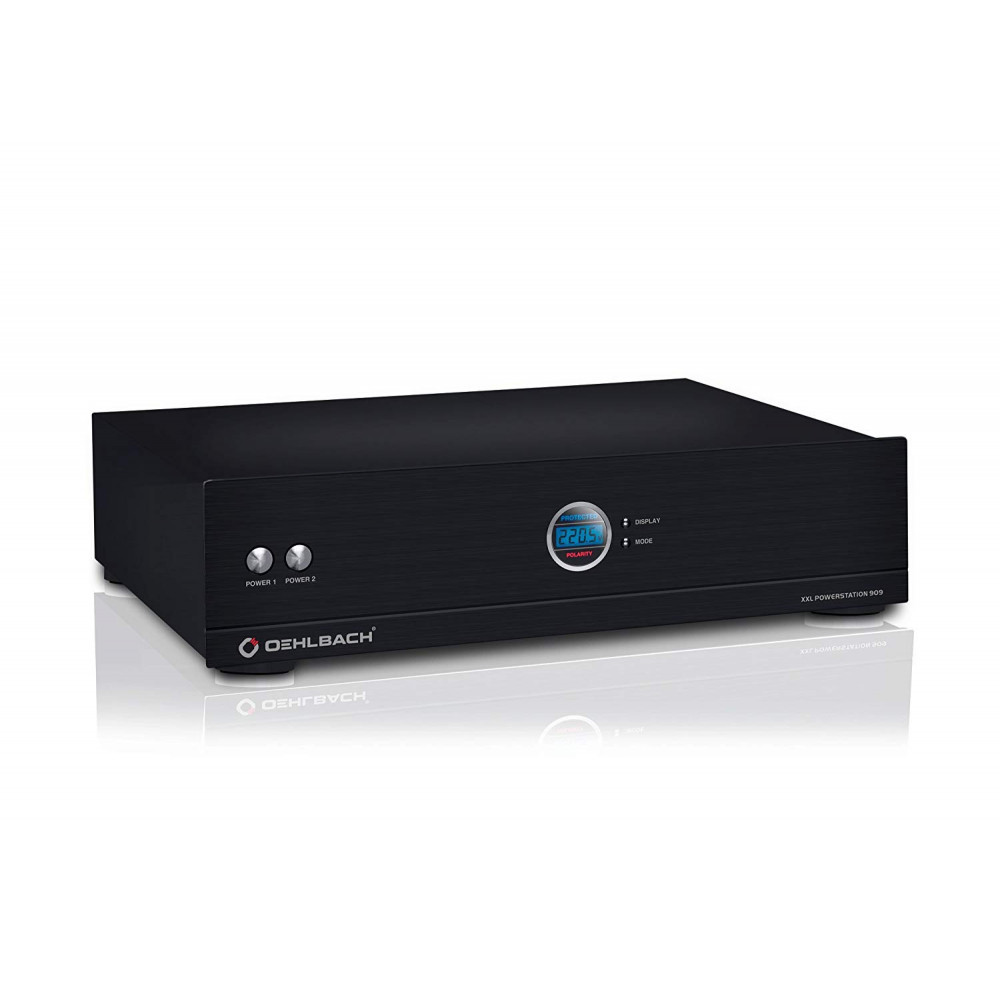 Устройство Powerstation 909 производства компании OEHLBACH — это 19-дюймовый многогнездовое устройство для установке в стойке или на столе, разработанный для для использования с высококачественным аудиооборудованием. Оно содержит восемь отдельных розеток — четыре цифровых (с фильтрацией) и четыре аналоговых (без фильтрации). Кроме того, две отдельные группы розеток, состоящие из двух гнезд с фильтрацией и двух гнезд без фильтрации, могут выключаться независимо друг от друга. Устройство Powerstation 909 оснащено указателями фазы, а индикация правильности подключения выполняется посредством красной сигнальной лампы, которая позволяет проверить правильность подключения. Это единственный способ эффективно предотвратить воздействие токов уравнивания потенциалов на данные аудио и видео. Эта колодка оснащено функцией задержки (три секунды) срабатывания переключателя питания от электросети, чтобы исключить скачков напряжения при включении. На дисплее, который можно выключить и который встроен в алюминиевую панель, отображается информация о потреблении электроэнергии и напряжении в текущий момент момент времени. Внутренний проводник с поперечным сечением 3,3 мм², изготовленные из бескислородной меди с высокой степенью очистки, обеспечивает высочайшее качества и гарантирует стабильное электропитание в любых условиях, даже при подключении компонентов с высоким токопотреблением.