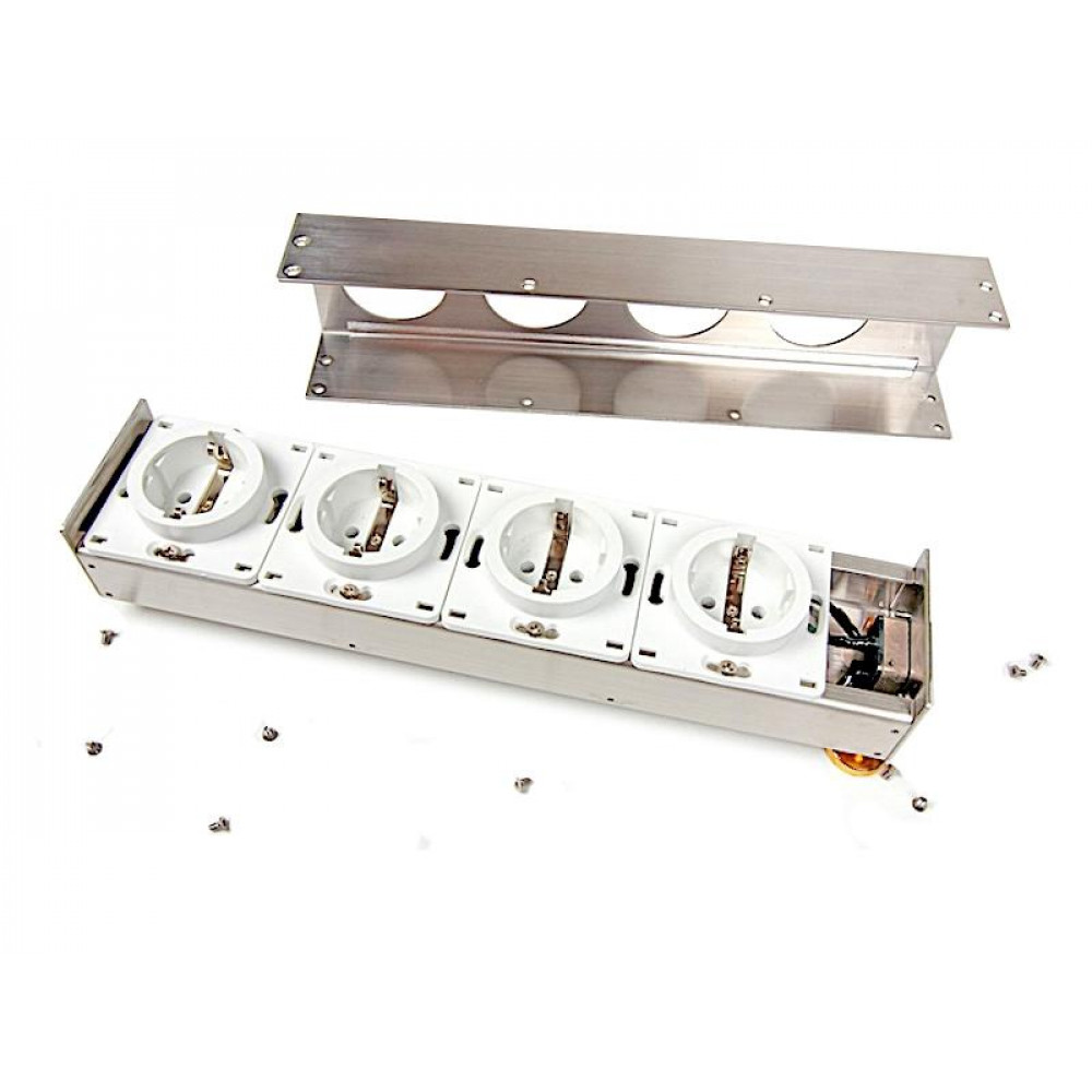 Розподільник оснащений фірмовими електричними розетками з подвійними пружинними контактами і шириною контактної поверхні в 9 мм, що забезпечують виключно щільну і надійну фіксацію штепселя. Це гарантує надійний електричний контакт практично в будь-яких умовах експлуатації, в тому числі і при значних вібраціях корпусу розподільника.