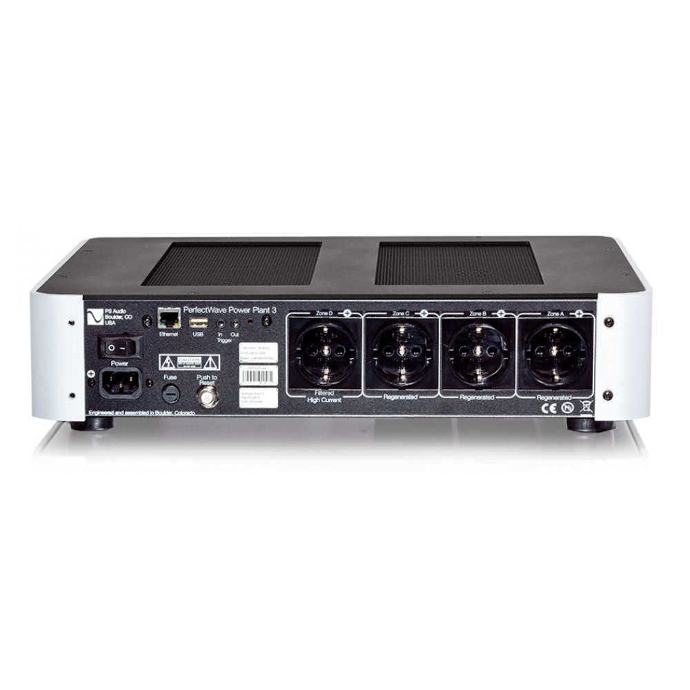 PerfectWave Power Plant 3 выдает в нагрузку до 1000 Вт пиковой и до 750 Вт непрерывной мощности. Высокостабилизированный выход регенератора обладает в 100 более низким импедансом, чем у любой из выпускавшихся ранее моделей. У P3 имеются 3 раздельных зоны с регенерированным питанием, а также 4-я зона – с отфильтрованным и защищенным от высоковольтных выбросов выходом, рассчитанным на большие токи. Компактный корпус с принудительным охлаждением оснащен вентилятором, который включается автоматически.