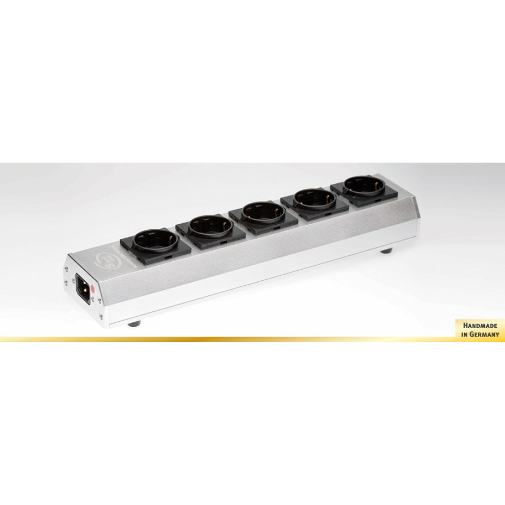 Эталонный сетевой разветвитель Silent WIRE принадлежит к абсолютному классу high-end и позволяет подключать 5 сетевых кабелей. Корпус толщиной 13 мм выполнен из фрезерованного алюминия и обеспечивает полную защиту от микрофонии, внутренняя проводка – из сверхчистой посеребренной меди. Общий вес разветвителя – 3,2 кг. Отдельные розетки из бронзы с позолотой. Разветвитель рассчитан на напряжение 190-250 В, максимальный ток – 16 А.