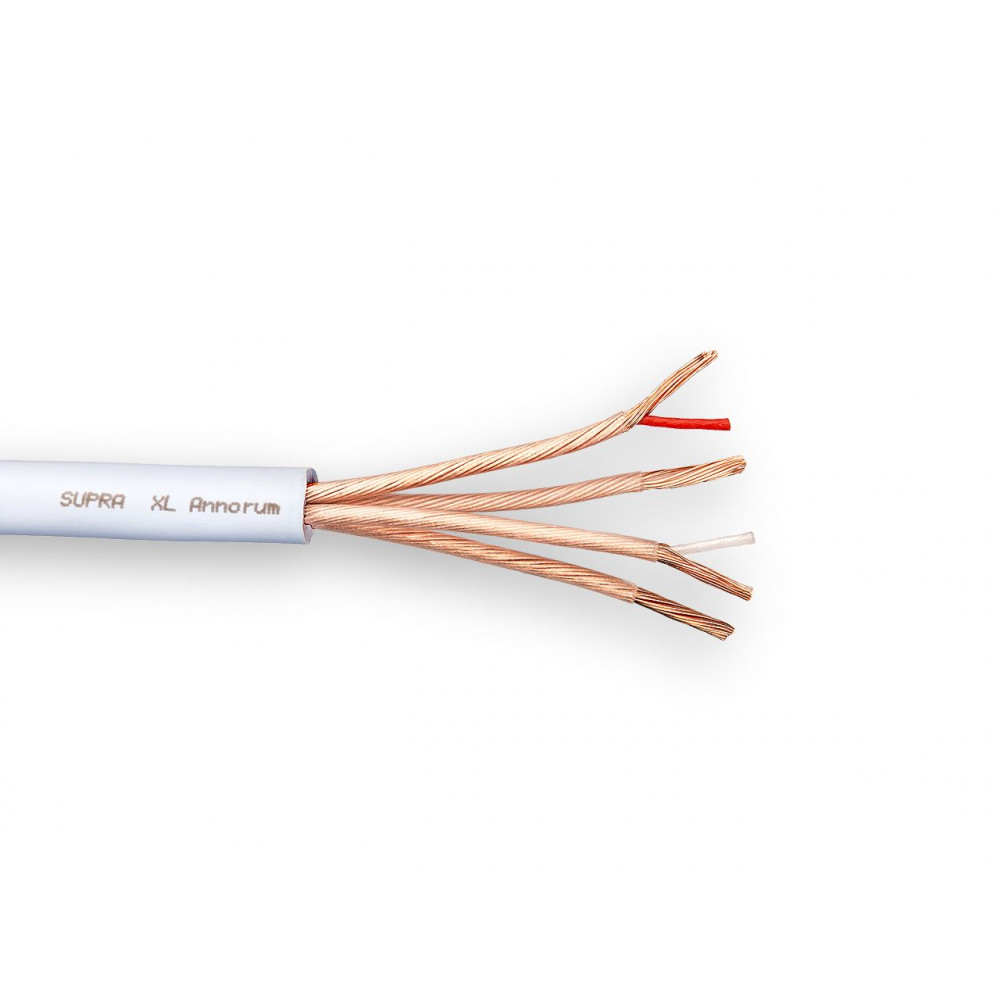 Универсальный (бивайринг/биампинг/стерео) акустический кабель Supra XL Annorum был с гордостью презентован компанией Supra Cables к своему 40 летнему юбилею. Название кабеля родилось из игры с латинскими цифрами и языком, где XL означает -10 + 50 = 40, а Annorum является производным от Anno (год на латинском), то есть суммарно получаем как раз 40 лет. Сам кабель был разработан совместно известным шведским разработчиком акустики, который создал, в частности, знаменитую акустику QLN. Изначально задача заключалась в разработке проводника для внутренней разводки акустики и кроссоверов. Но в результате разработки инженеры получили настолько хорошую производительность, что было принято решение о создании полноценного акустического кабеля.