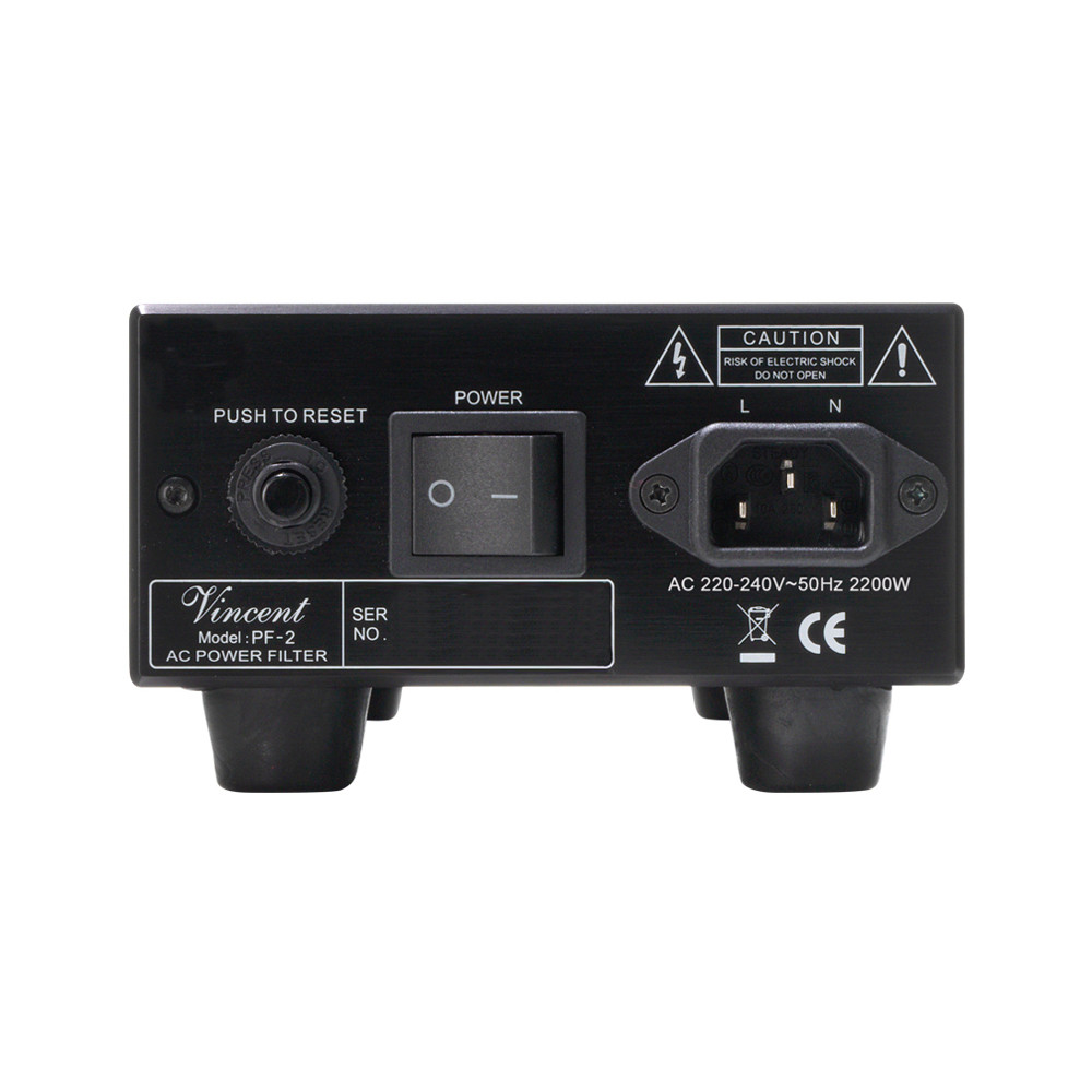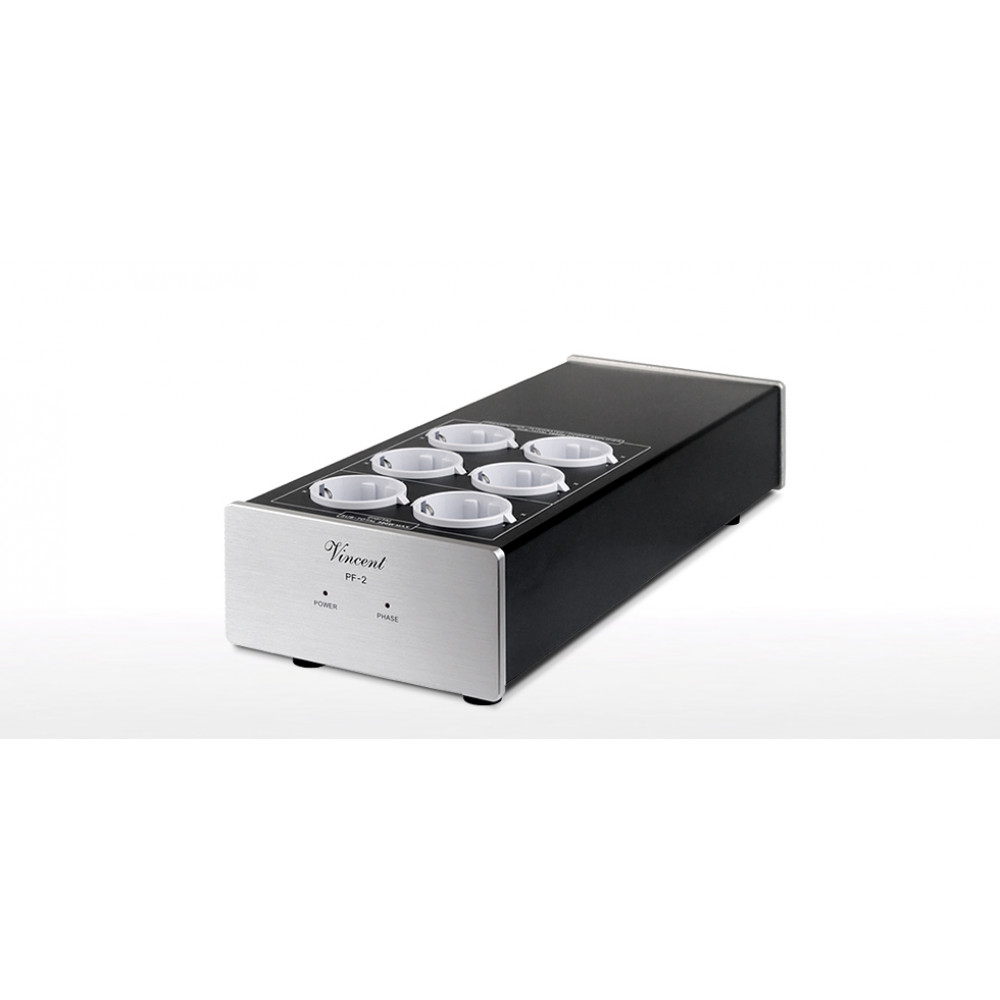 VINCENT PF-2 фильтр электропитания, устраняет все возмущения электро сети, которые воздействуют на ваши Hi-fi компоненты или систему домашнего кинотеатра. 2 Schuko розетки для цифровых источников и 4 аналоговых и / или усилителей предлагают достаточные возможности для подключения. Защита от перегрузки automativ защищает фильтр.