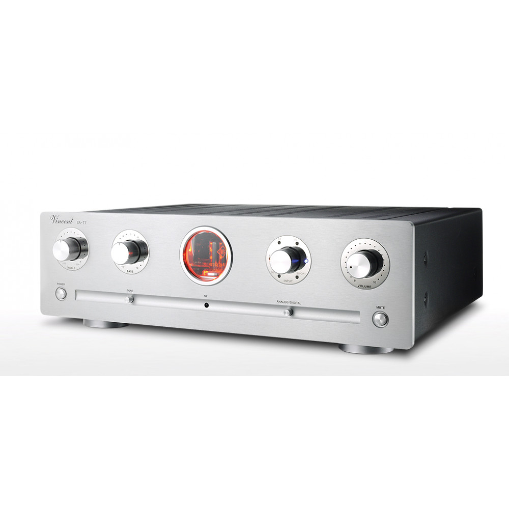 Результат применения новой схемы Best Pentode вкупе с уникальным блоком электропитания Vimala — высоколинейный предусилитель с малыми шумами и искажениями, а также отличными импульсными характеристиками. Все это залог высококачественного воспроизведения музыки. Компания Vincent гордится своим предусилителем SA-T7, вершиной достижений компании, результат опыта разработки передовых ламповых усилителей в течение многих успешных лет